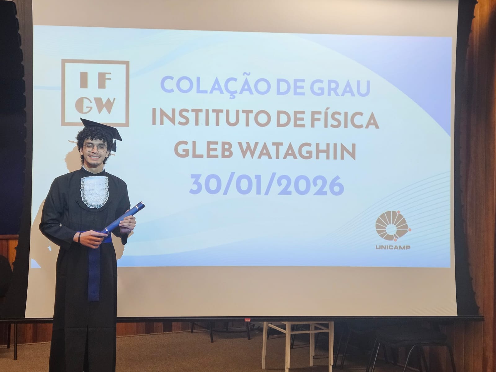 Parabéns, Caio! Que sua jornada na Física continue iluminando caminhos e inspirando nossos atuais alunos a acreditarem que o céu é o limite.